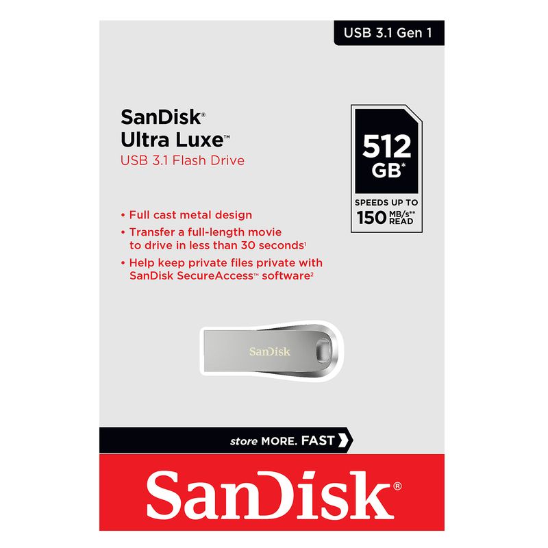 512Gb SanDisk Ultra Luxe, металл, USB 3.1 (SDCZ74-512G-G46)