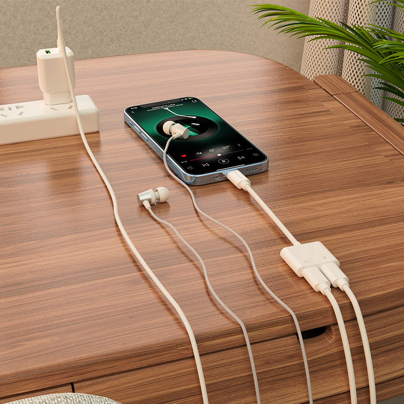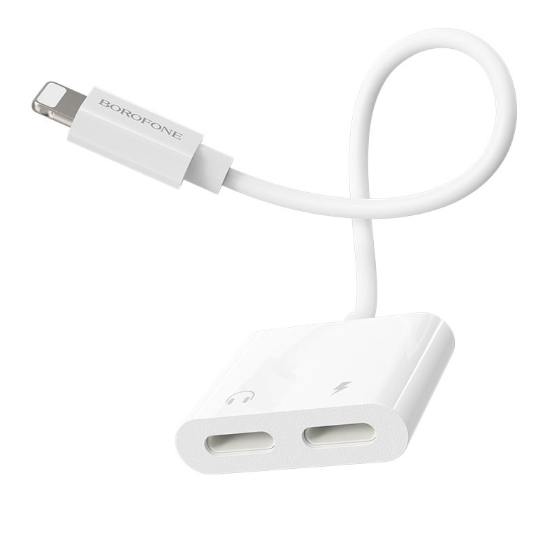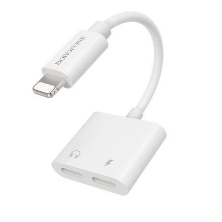 Адаптер Lightning (m) - 2x Lightning (f), audio+charging, белый, 12 см, Borofone BV11