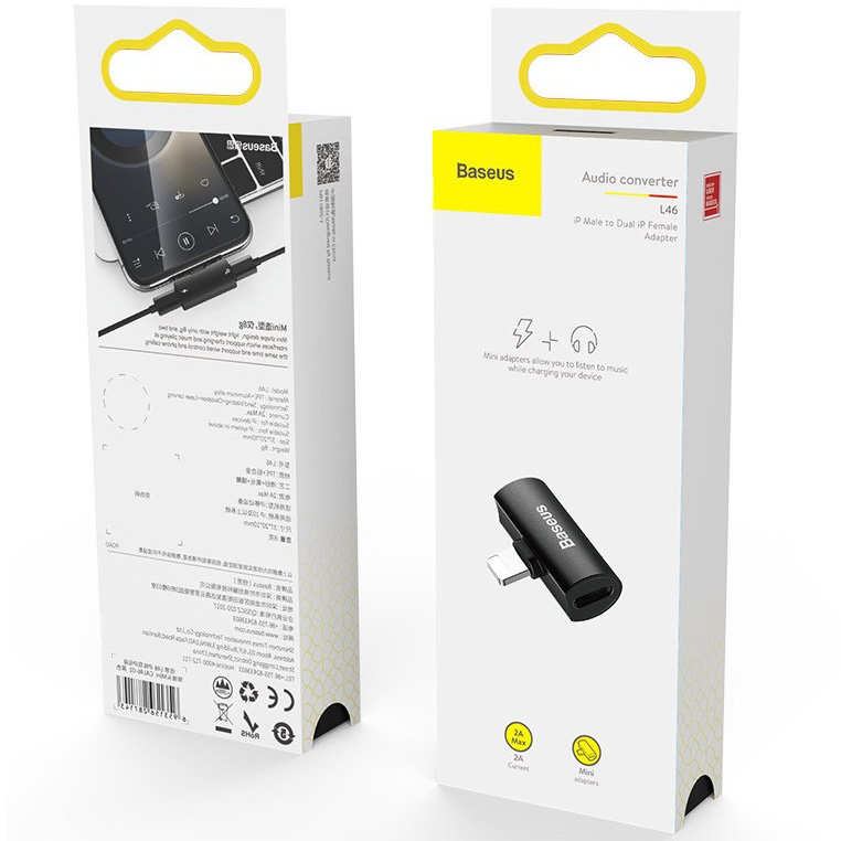 Производитель: Baseus Наименование: Адаптер для устройств Apple Предназначение: Подключение зарядного устройства и наушников Максимальный зарядный ток: 2 A Разъемы: Lightning (m) - 2 х Lightning (f) Цвет: Чёрный