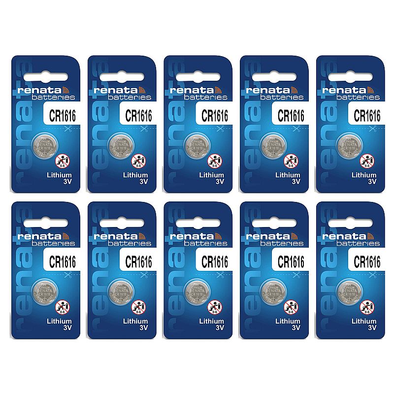 Литиевые батарейки CR1616 Renata Lithium используются в часах, калькуляторах, пультах сигнализаций и других электронных устройствах. Цена указана за 10 батареек (10 блистеров).