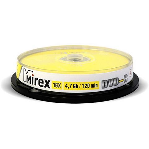 Диск DVD-R Mirex 4,7 Gb 16x, Cake Box, 10шт (UL130003A1L)