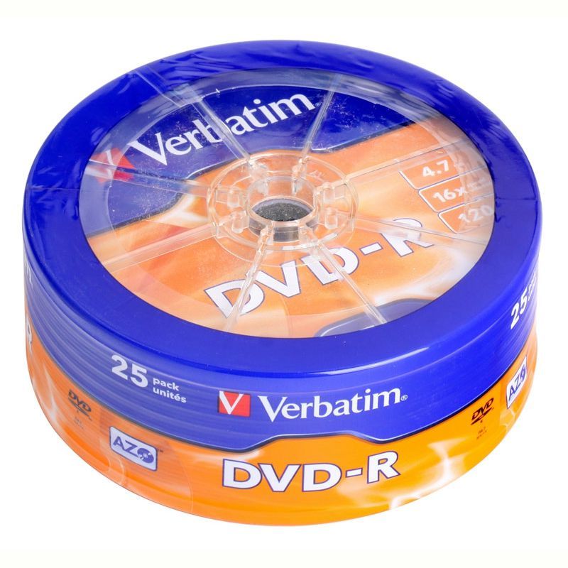 Оптический записываемый диск DVD-R Verbatim 4,7 Гб 16x, упаковка термопленка, в упаковке 25 шт.