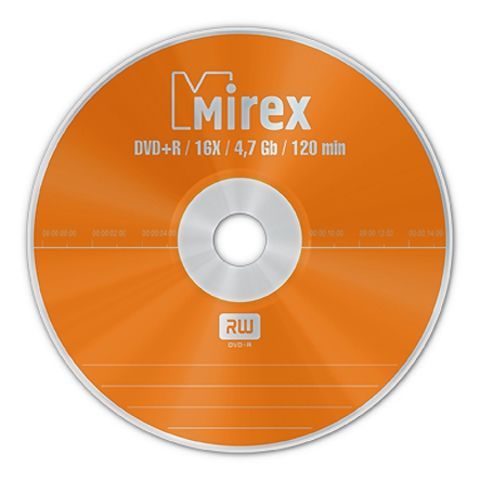 Оптический записываемый диск DVD+R Mirex 4.7 Гб 16х. Совместим со всеми распространёнными DVD-ROM приводами и DVD- устройствами записи и проигрывания. Упаковка Cake Box. В упаковке 25 шт.