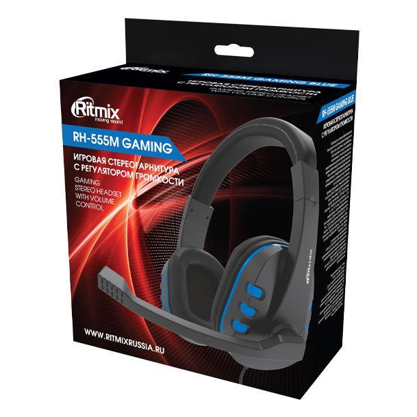 Гарнитура Ritmix RH-555M, игровая, чёрно-синяя