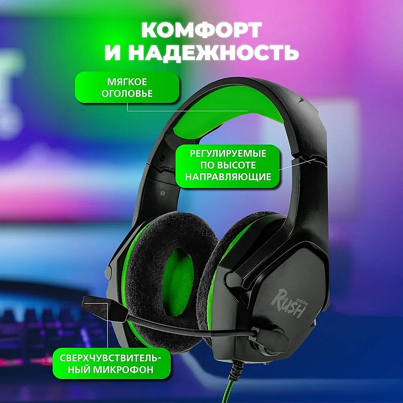 * Велюровые амбушюры * Прочный кабель в текстильной оплетке * Регулировка громкости (на чашечке) * Высокочувствительный отключаемый микрофон на подвижной мачте * Игровые 40мм динамики