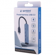 HUB 4-port Gembird UHB-C474 USB 3.1 с доп. питанием (порт Type С), алюминий, кабель Type C