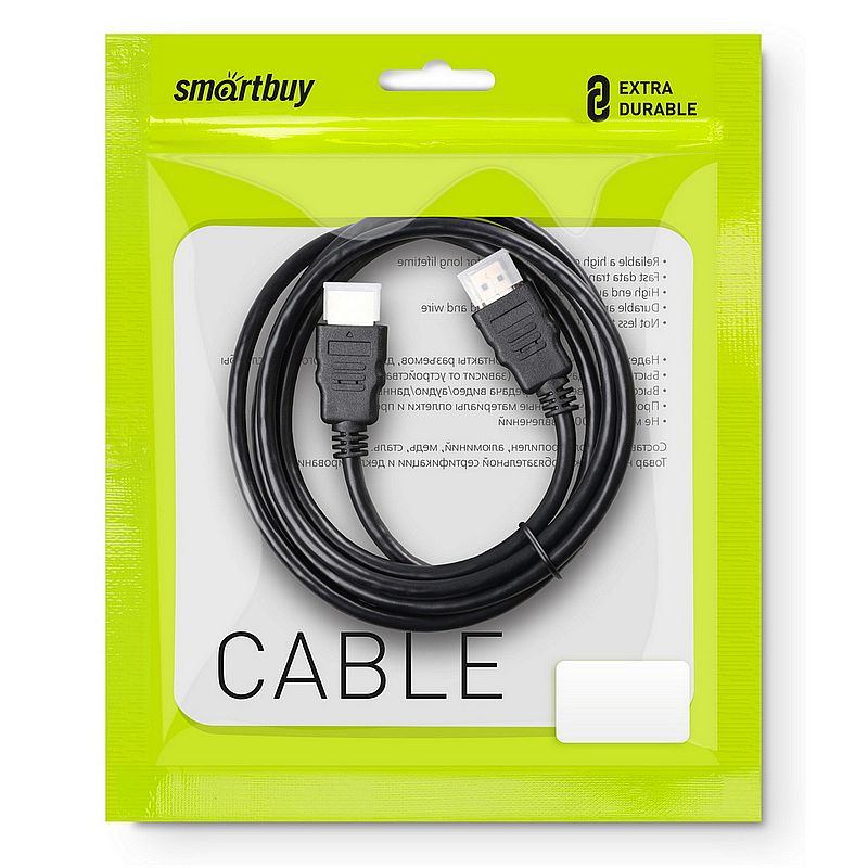 Производитель: Smartbuy Наименование: HDMI-кабель Версия: 1.4b Разъемы: HDMI 19M-19M Контакты: Позолоченные Оплетка: Поливинилхлорид Длина кабеля: 3 м Цвет: Черный