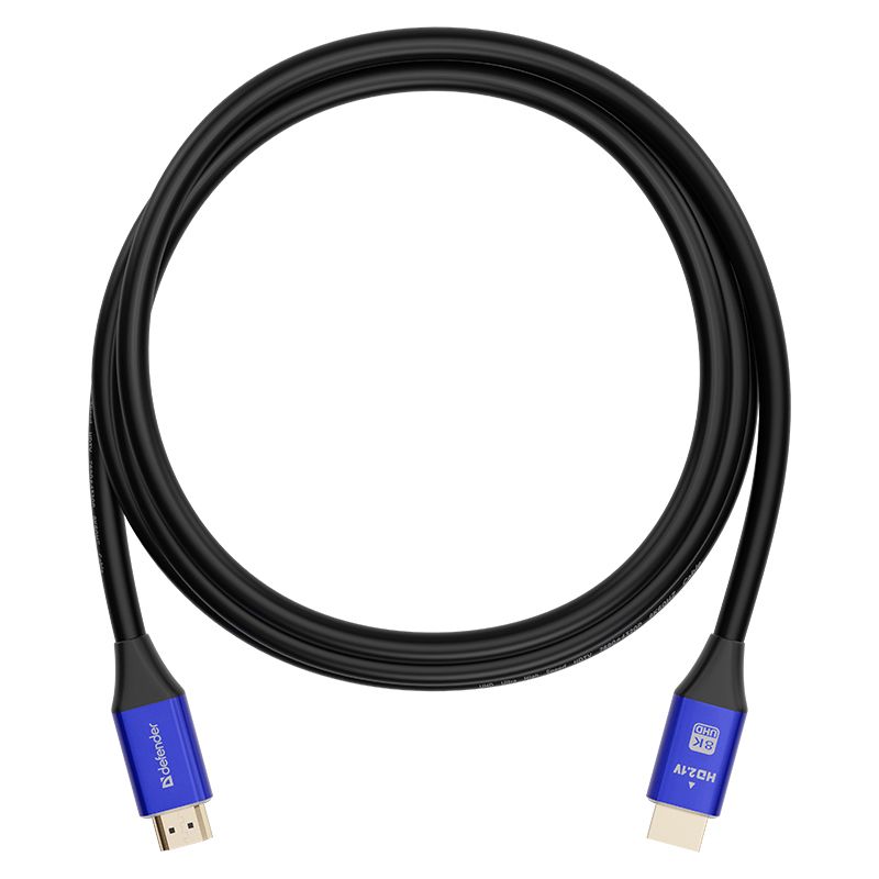 Кабель HDMI 19M-19M V2.1 8K, 2 м, черный/синий, Defender (87331)