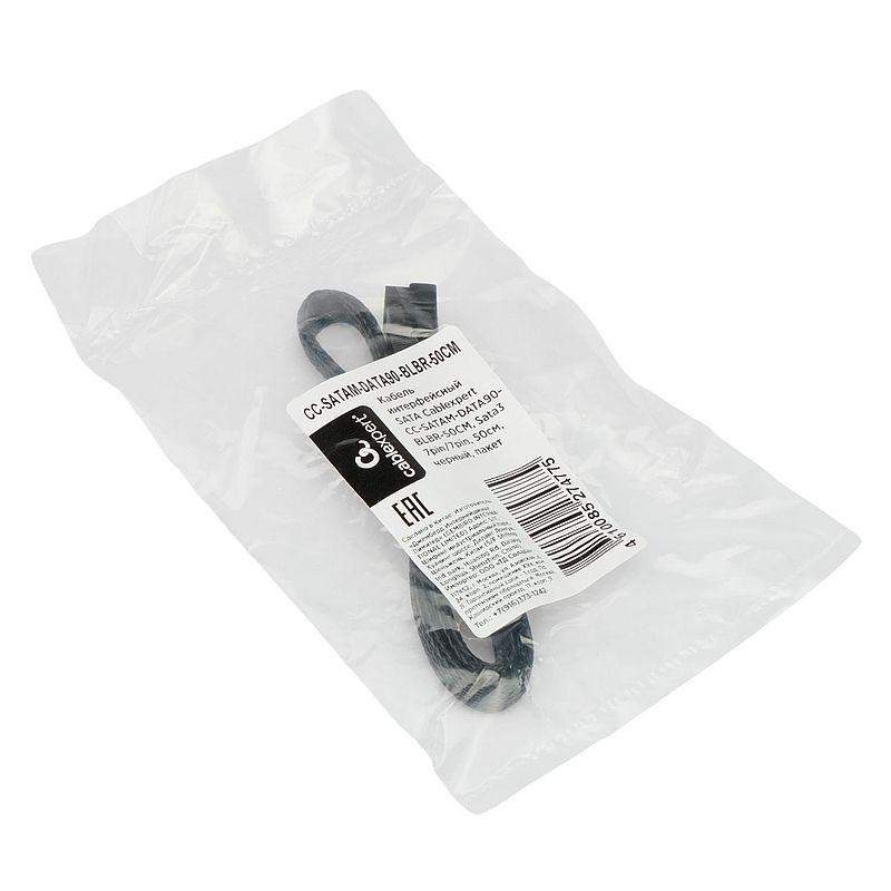 Кабель интерфейсный S-ATA, угловой, защелка, оплетка, 0.5 м, Cablexpert (CC-SATAM-DATA90-BLBR-50CM)