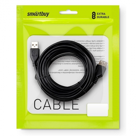 Кабель удлинитель USB 2.0 Am=>Af - 1.8 м, черный, Smartbuy (K-845-200)