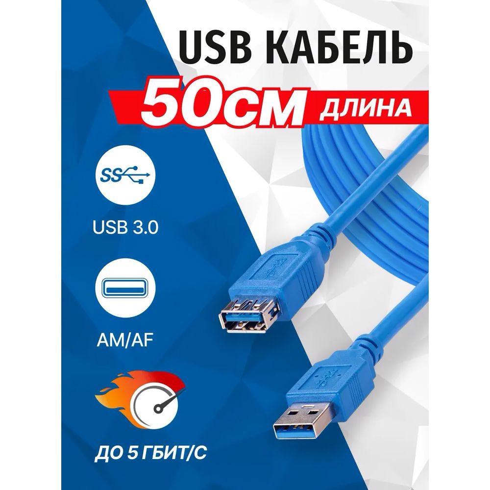 Кабель удлинитель USB 3.0 Am=>Af - 0.5 м, синий, 5bites (UC3011-005F)