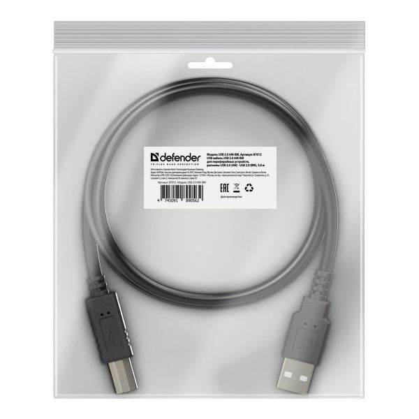 Производитель: Defender Наименование: Кабель USB для подключения периферийных устройств Разъемы: USB A (m) - B (m) Интерфейс: USB 2.0 Пропускная способность: До 480 Мбит/сек Длина кабеля: 3 м Цвет: Черный Упаковка: Пакет