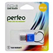 Карт-ридер внешний USB Perfeo PF-VI-R008 MicroSD, синий (PF_5054)