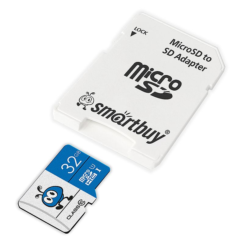 Карта памяти Micro SDHC 32Gb Smartbuy Blue Class 10 UHS-I + адаптер SD (SB32GMSDU1BLUE01)