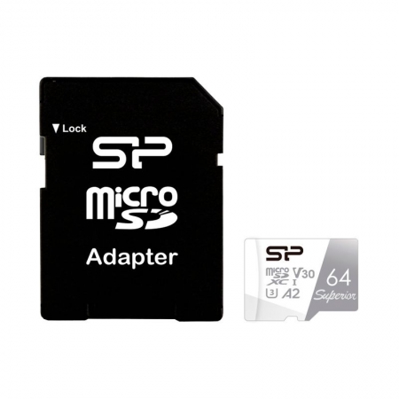 Карта памяти Micro SDXC 64Gb Silicon Power Superior U3 V30 A2 + адаптер SD (SP064GBSTXDA2V20SP)