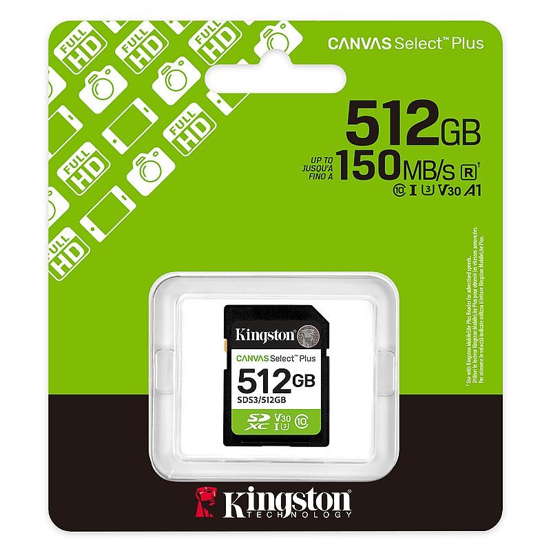 Карта памяти SDXC 512Gb Kingston Canvas Select Plus U3 V30 150 Мб/с (SDS3/512GB)