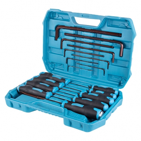 Набор отверток Smartbuy SBT-SCN-18P2 предназначен для ремонта радиоэлектроники, мебели, автомобилей и др. В состав набора входят четыре шлицевые отвертки SL3x75, SL5x100, SL6x100, SL6.3x150, пять крестовых отверток PH5x100, PH6x100, PH6x150, PH6.3X150, PH3x75 и 9 отверток HEX. Удобная эргономичная рукоять способствует комфортному использованию отвертки. Компактный пластиковый кейс обеспечивает удобное хранение и транспортировку инструмента. Технические характеристики