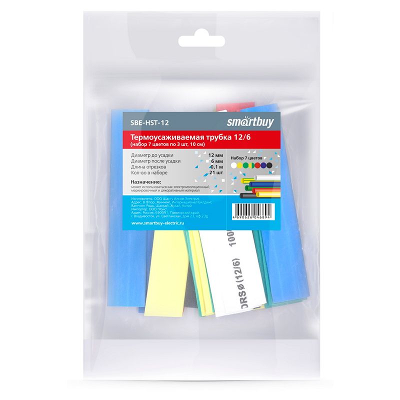 термоусадочных трубок диаметром 12 мм. Трубки выполнены в разных цветах и