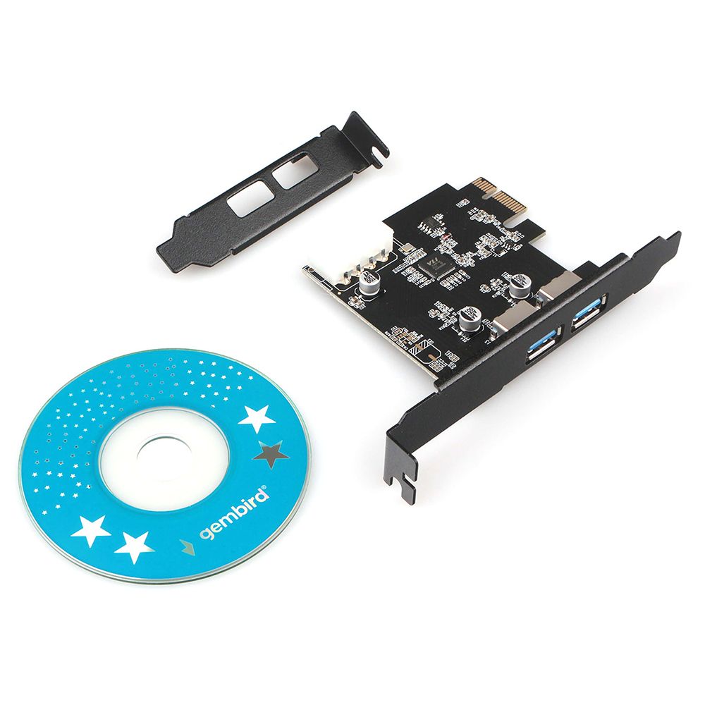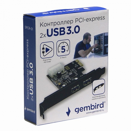 С помощью PCI Express контроллера Gembird SPCR-01 вы сможете добавить в компьютер два современных порта USB 3.0 Тype A. Контроллер поддерживает интерфейс USB 3.0 со скоростью передачи данных до 5 Гбит/сек. В комплект входит CD диск с драйверами и низкопрофильная планка.