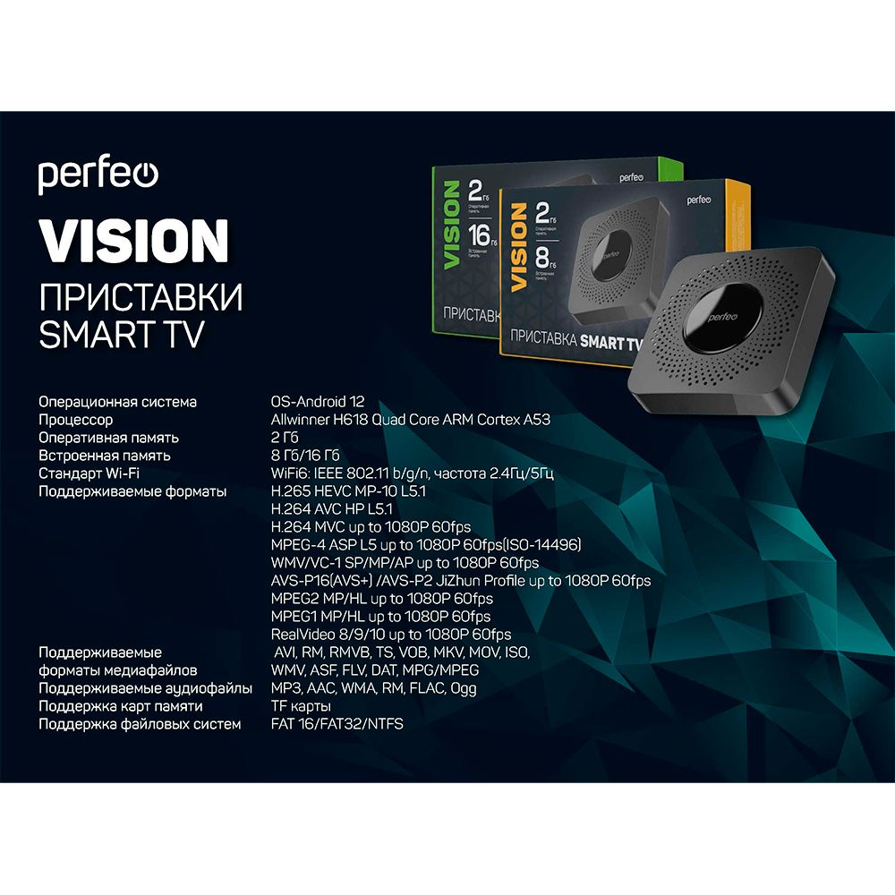 Приставка Smart TV Perfeo Vision, 2G/8Gb, Allwinner H618, Bluetooth, Android 12 (PF_A4559)