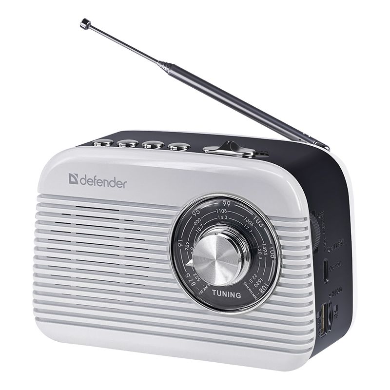 Радиоприемник Defender Signal, FM/AM/SW, Bluetooth, MP3, черный/белый (65089)
