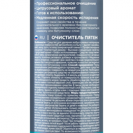 Особенности * Средство для удаления любых клеевых материалов с различных поверхностей автомобиля и в быту