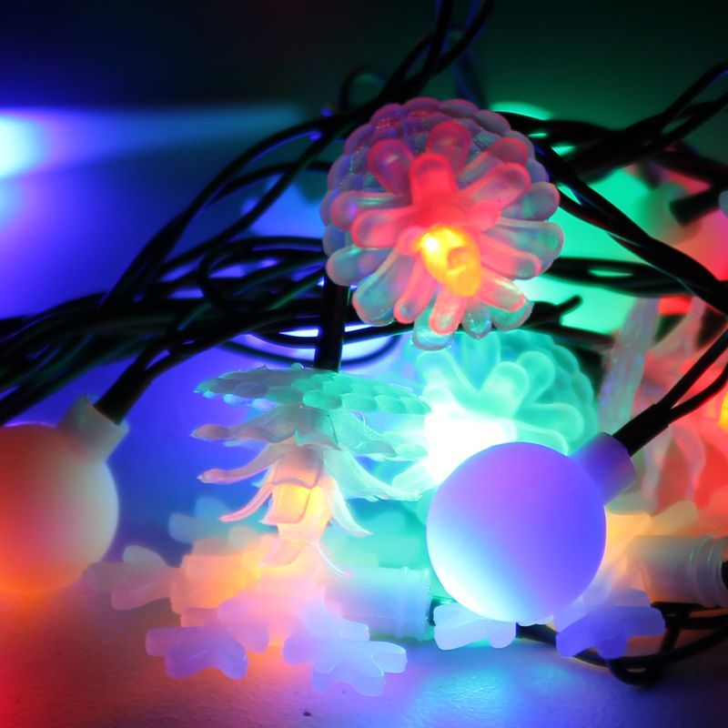 Светодиодная гирлянда Космос Шишки, снежинки, шарики", мультиколор, 30 LED, 8 режимов, 4.4 м"