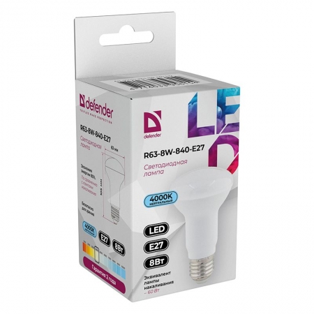 Лампочка Defender R63 рефлектор 8Вт предназначена для использования в осветительных приборах наружного и внутреннего освещения. Является современным, качественным и доступным источником света. Позволяет экономить до 90% электроэнергии по сравнению с лампой накаливания с аналогичным световым потоком. Светит ярким белым светом, который максимально приближен к естественному дневному.