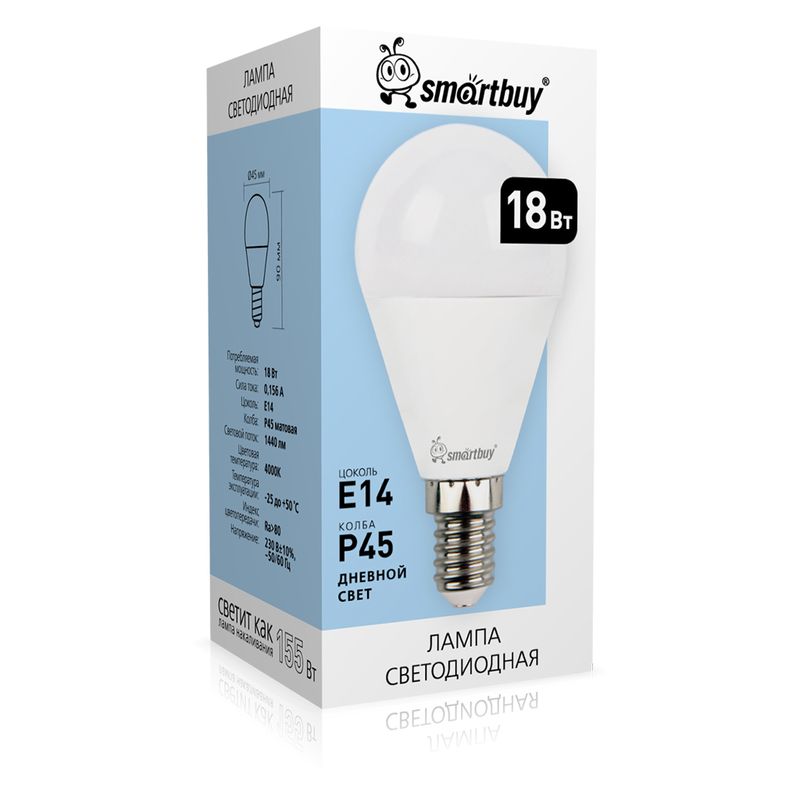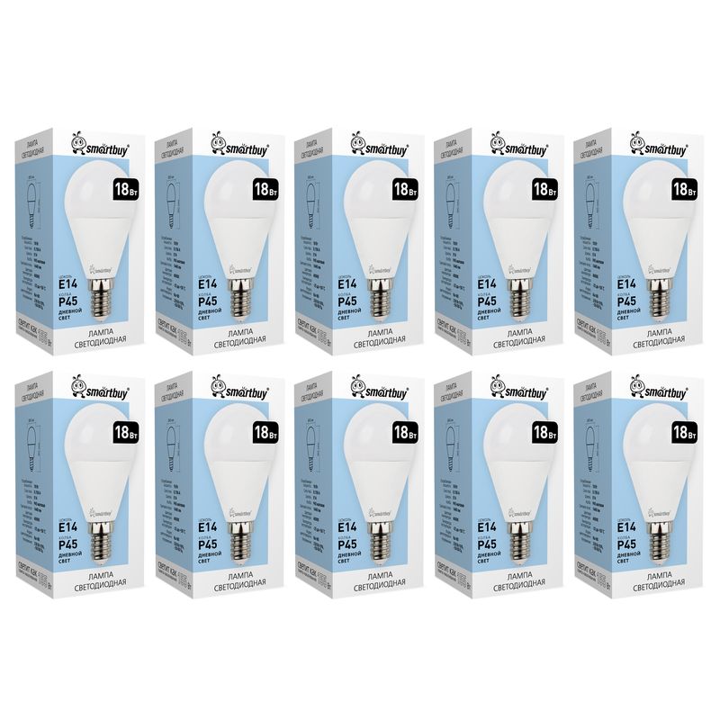 Светодиодная (LED) лампа Smartbuy P45 18W/4000/E14, 10 шт (SBL-P45-18-40K-E14)