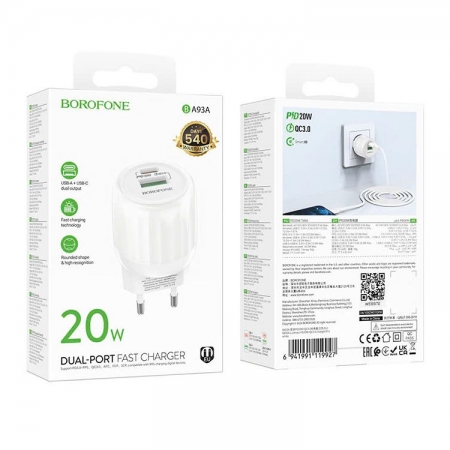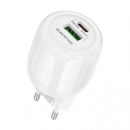 Зарядное устройство Borofone BA93A, QC3.0/PD 20W USB A+C, белое