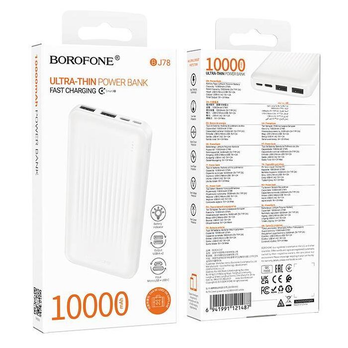 Внешний аккумулятор Borofone BJ78 Clever будет незаменим для зарядки различных типов устройств. Он оснащен литий-полимерным аккумулятором емкостью 10000 мАч и двумя выходными портами USB A. Для зарядки повербанка предусмотрены порты Micro USB и USB C. Контроль за уровнем заряда аккумулятора осуществляется с помощью светодиодного индикатора. Многоуровневая защита обеспечит безопасность использования повербанка. Корпус изделия выполнен из ударопрочного и термостойкого пластика.
