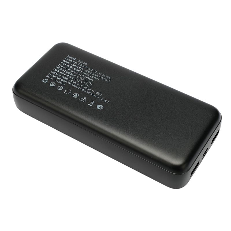 Зарядное устройство Gembird GPB-20, 20000 мА/ч, 2A 2xUSB, черное