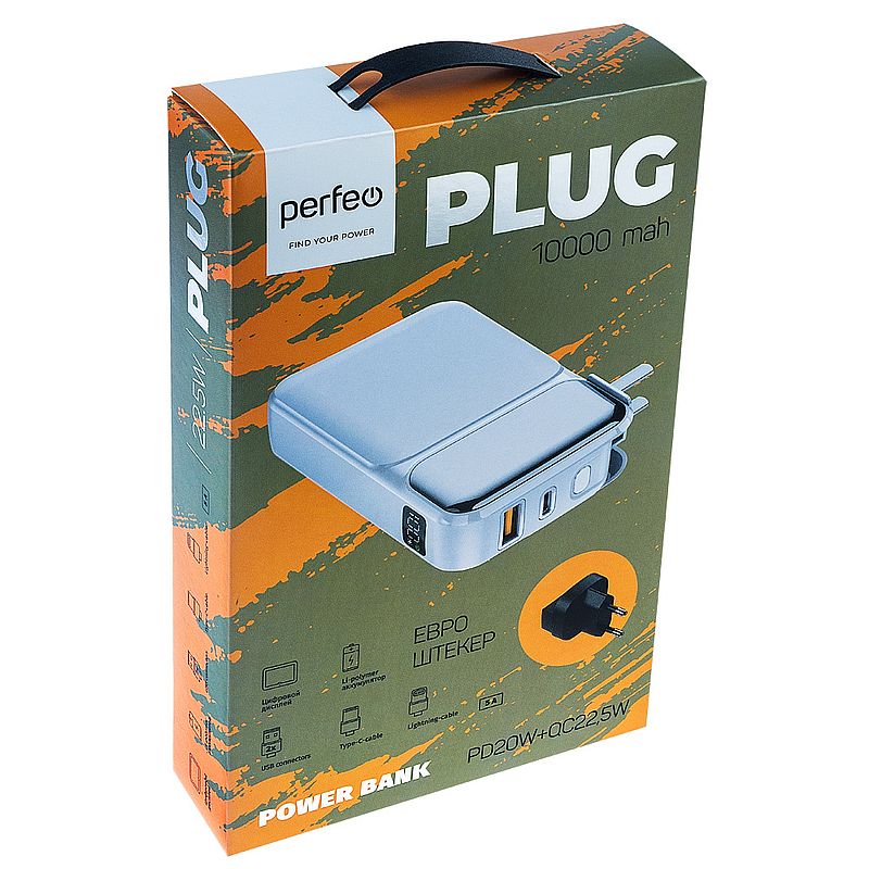 Perfeo Powerbank Plug - удобный повербанк со встроенной вилкой для