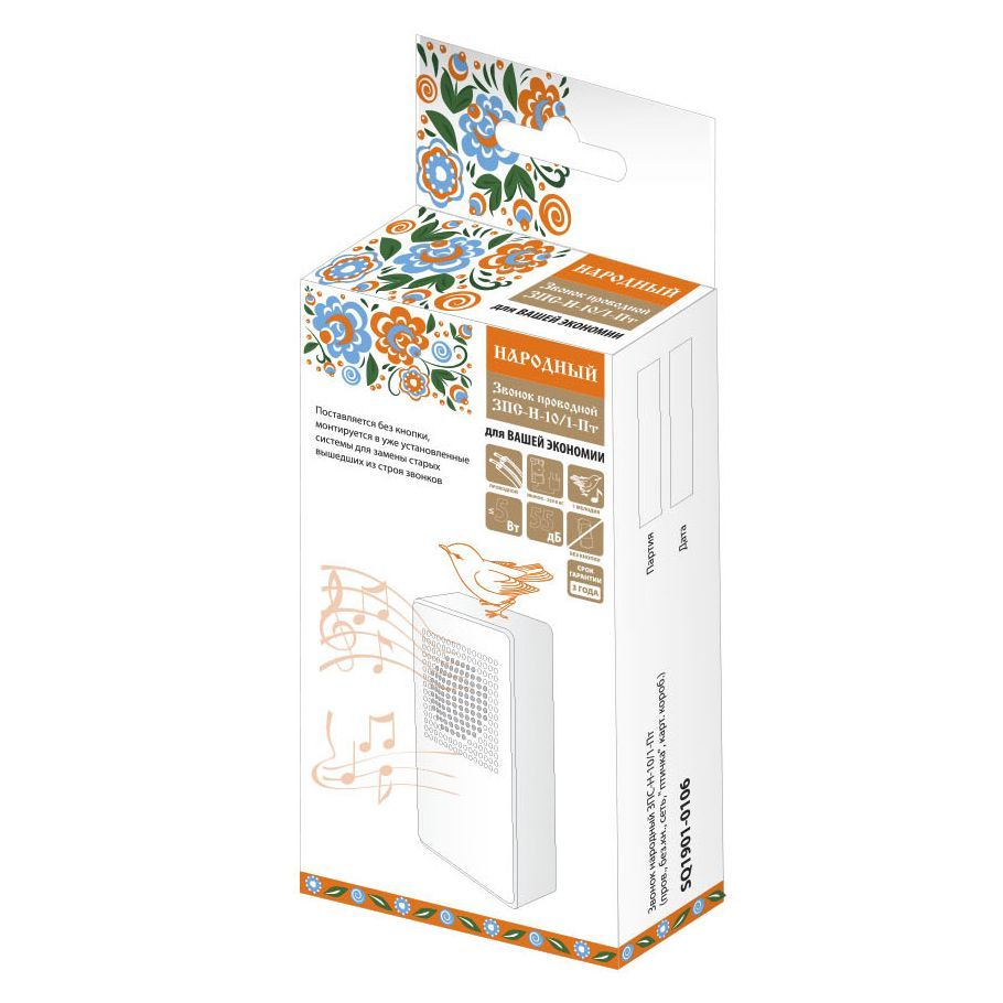 Электрический звонок TDM ЗПС-Н-10/1-Пт используется для подачи звукового сигнала в жилых, служебных и общественных помещениях Звонок имеет одну мелодию "птичка", регулировки громкости звука в нем не предусмотрено. Питается от электросети 220В. Поставляется без кнопки, монтируется в уже установленные системы для замены старых вышедших из строя звонков. Технические характеристики