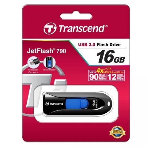 Легкий и компактный флеш-накопитель Transcend JetFlash 790 с высокоскоростным интерфейсом USB 3.0 обеспечит быструю передачу и надежно сохранит ваши данные. Благодаря привлекательному дизайну и обтекаемой форме пользоваться устройством не только удобно, но и приятно. Встроенный коннектор, выдвигающийся одним пальцем, позволяет мгновенно начать работу. С помощью предусмотренного отверстия флешку можно носить с собой на связке ключей или на ленте.