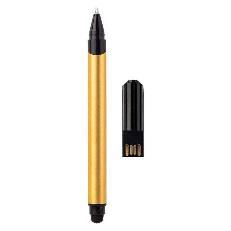 Производитель: SmartBuy Наименование: 3 в 1 USB-накопитель + ручка + стилус Емкость: 32 Гб Интерфейс: USB 2.0 Цвет чернил: Синий Материал корпуса: Металл/пластик Цвет корпуса: Золотистый/чёрный Размеры: 135 x 12 мм Вес: 31 г Упаковка: Блистер