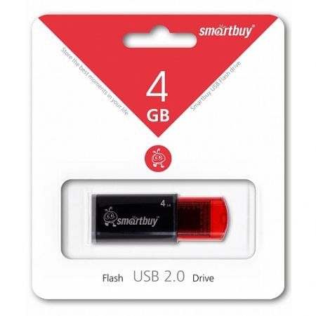 Производитель: SmartBuy Емкость: 4 Гб Интерфейс: USB 2.0 Материал корпуса: Пластик Совместимость с ОС: Windows 2000/ ХР/ Vista/ 7, Mac OS 8.6 и Linux 2.4.0 (или выше) Цвет: Черный/красный Вес: 10 г