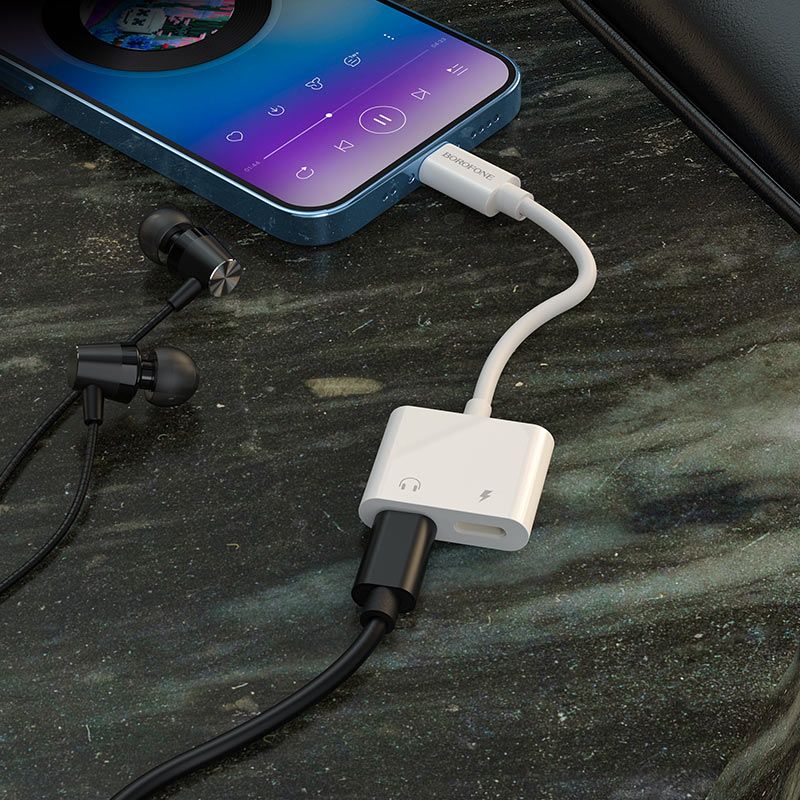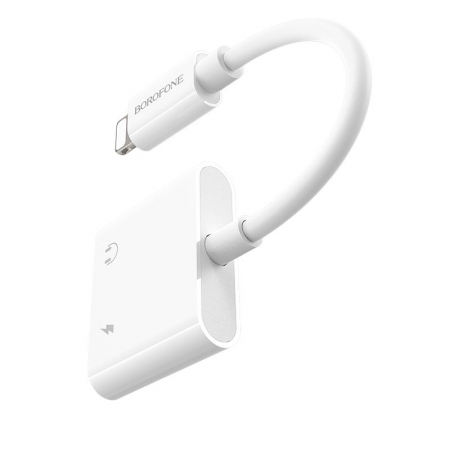 Адаптер Lightning (m) - 2x Lightning (f), audio+charging, белый, 12 см, Borofone BV11