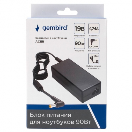 Адаптер питания для ноутбука Acer, 19В/4.74А, 90Вт, штекер 5.5х1.7мм, Gembird NPA-AC18