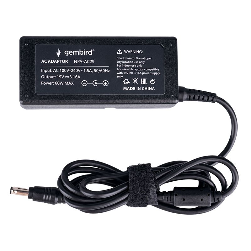 Блок питания для ноутбука, 19В/3.16А, 60Вт. Совместим с ноутбуками SAMSUNG. Устройство имеет защиту от короткого замыкания, перегрева, перенапряжения и перегрузки. Тип штекера: 5.5x3мм