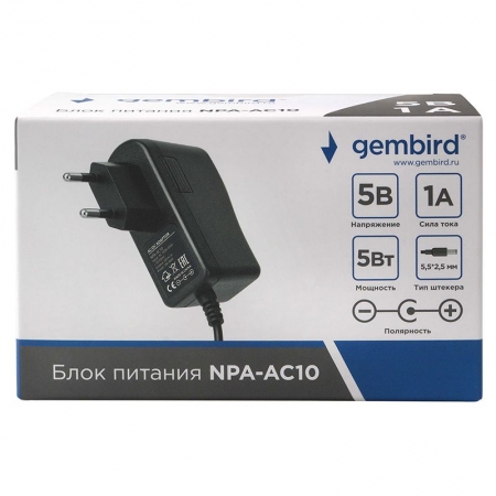 Адаптер питания Gembird NPA-AC10 5В/1А, штекер 5.5х2.5мм, черный