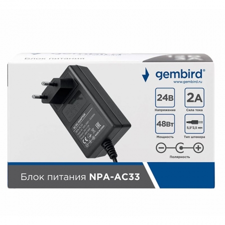 Адаптер питания Gembird NPA-AC33 24В/2А, штекер 5.5х2.5мм, черный
