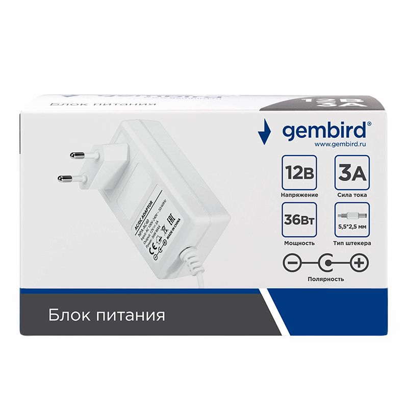 Адаптер питания Gembird NPA-AC40 12В/3А, штекер 5.5х2.5мм, белый