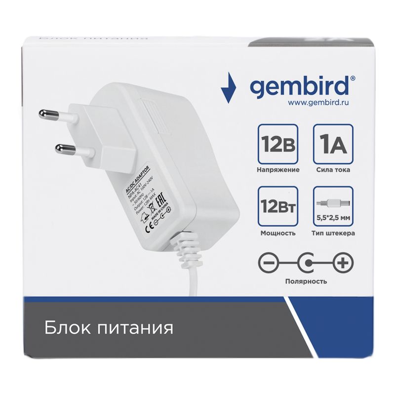 Адаптер питания Gembird NPA-AC41 12В/1А, штекер 5.5х2.5мм, белый