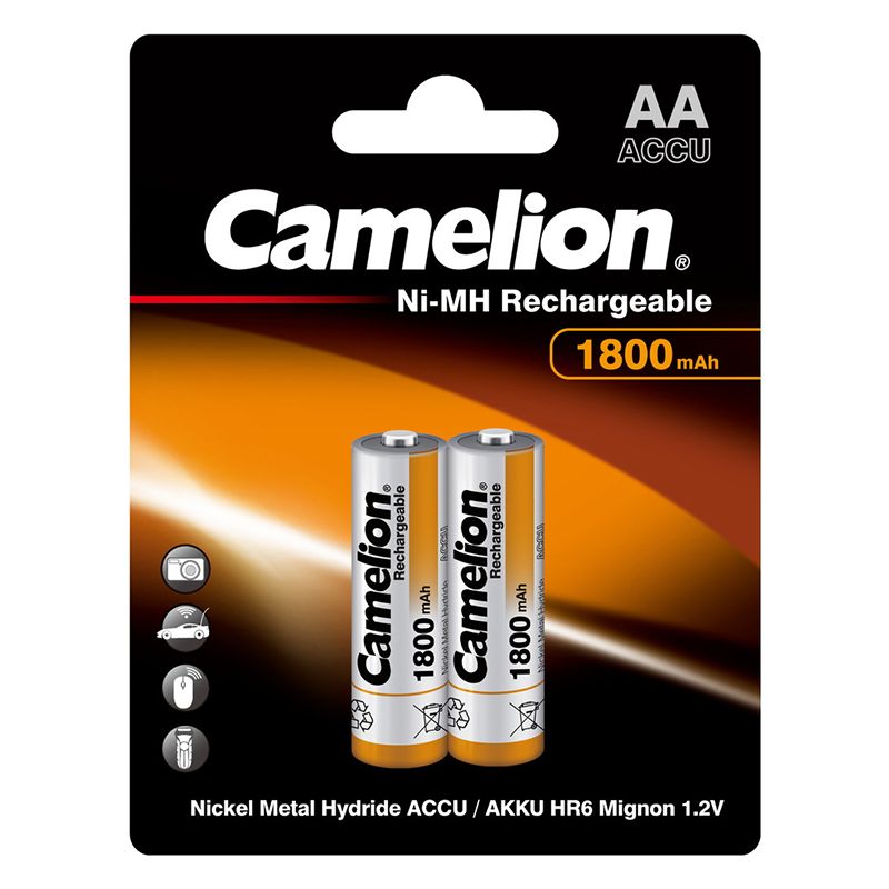 Ni-Mh аккумулятор АА Camelion 1800 мАч используется в игрушках, фонарях, цифровых камерах, радиотелефонах, радиостанциях и других электронных устройствах. Цена указана за упаковку. В упаковке 2 шт.