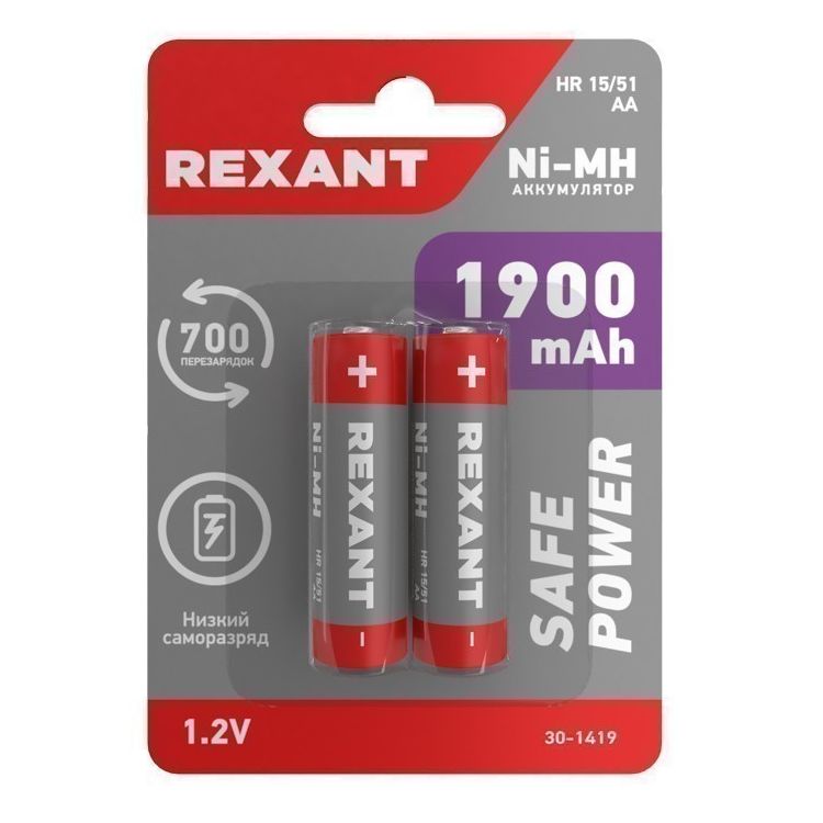 Ni-MH-аккумуляторы размера АА Rexant 1900 мАч идеально подходят для использования в различных электронных устройствах. Высокое качество, длительный срок службы, быстрая зарядка и типоразмер AA, совпадающий с основными массовыми типоразмерами батареек, делает данные аккумуляторы практически универсальными по применению. Цена указана за 2 аккумулятора.