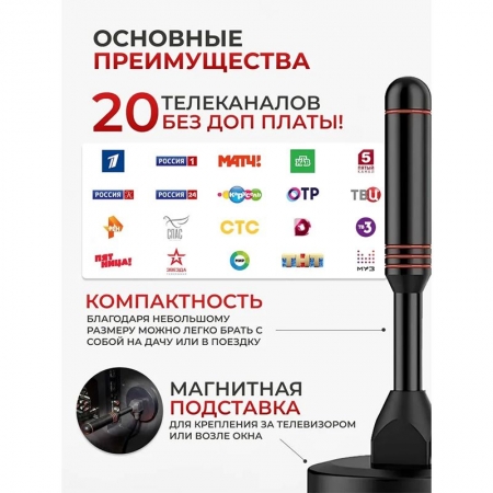 Антенна комнатная для цифрового ТВ DVB-T/T2, активная с усилителем, до 25 дБ, Selenga 110A (5608)
