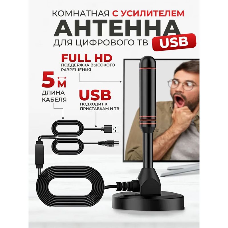 Производитель: Selenga Наименование: Антенна комнатная для ТВ Тип антенны: Активная Диапазон частот: 174 - 240 МГц, 470 - 862 МГц Поддержка стандартов: DVB-T/DVB-T2 Коэффициент усиления: 25 дБи Волновое сопротивление: 75 Ом Усилитель сигнала: Есть Поддержка 1080p, 4K Питание: USB 5 В Длина кабеля: 5 м Разъем: F-штекер + переходник на TV Цвет: Чёрный