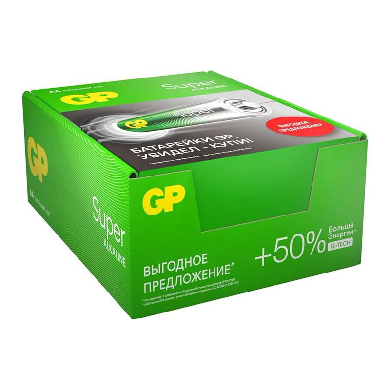 Батарейки AA GP Super Alkaline с технологией G-TECH обеспечивают до 50%*