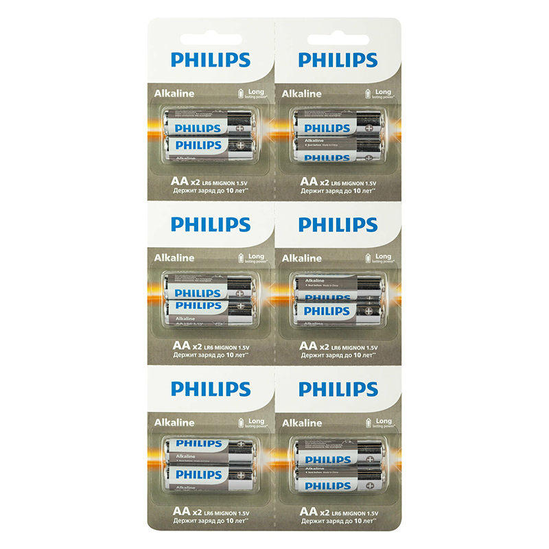 Батарейка AA Philips Alkaline LR6, 12шт, отрывной блистер